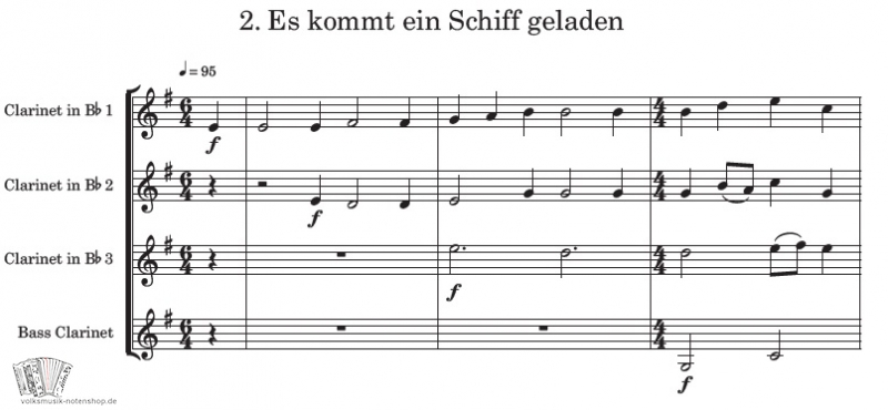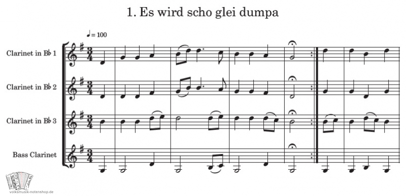 Stimmen für Klarinette 1 bis 3, Bassklarinette,