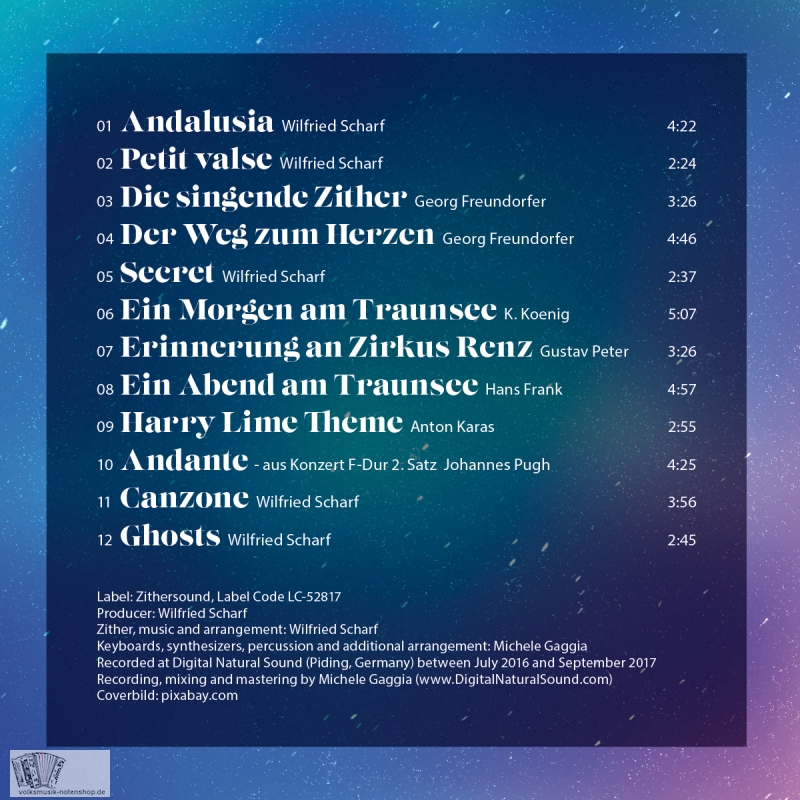 Traditionelle Zitherstücke und eigene Werke im neuen Sound eingespielt von Wilfried Scharf - arrangiert von Michele Gaggia
