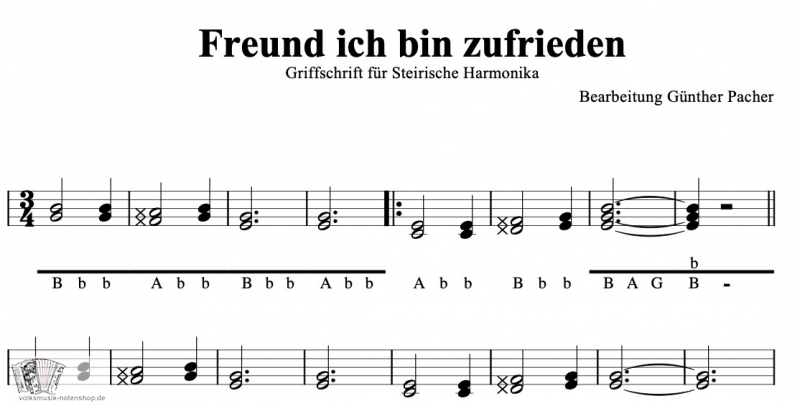 Freund, ich bin zufrieden in Griffschrift für Steirische Harmonika, bearb. v. Günther Pacher