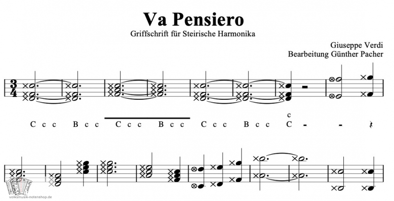 Va Pensiero (Nabucco) v. Guiseppe Verdi - in Griffschrift, bearb. v. Günther Pacher