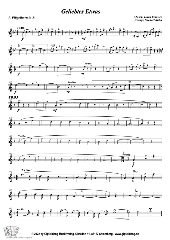 "Geliebtes Etwas" - ein harmoniebedürftiger, langsamer Walzer von Hans Krinner (arr. Michael Kuhn), der sich im 2/4-Takt wandelt und im 4/4-Takt feierlich endet.