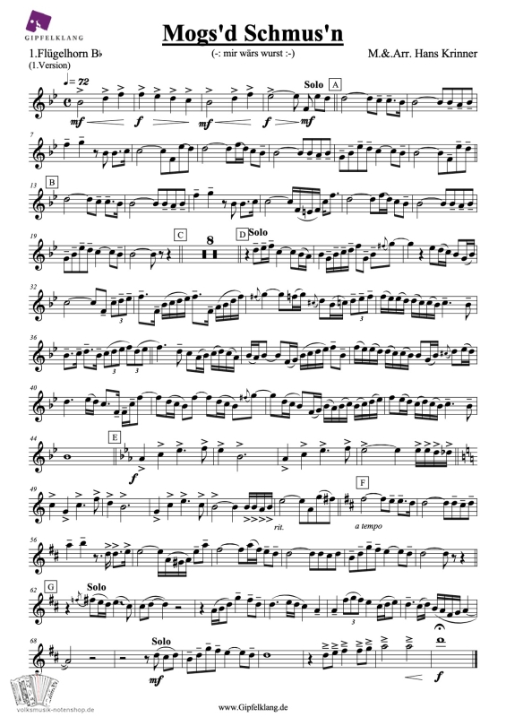 Mogs`d Schmus`n von Hans Krinner für kleine Besetzung zum Download.