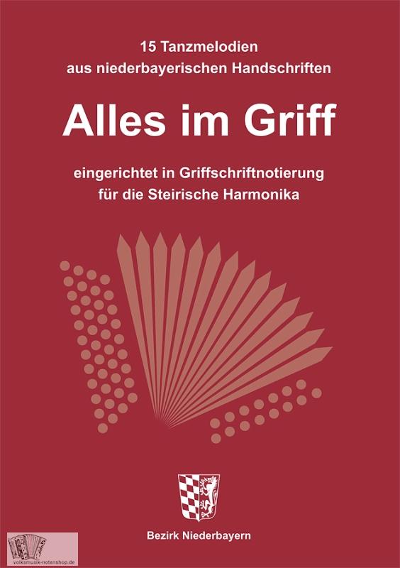 15 Tanzmelodien (Ländler, Schottisch, Mazurka, Polka Theinländer, Galopp) aus überlieferten Musikantenhandschriften der niederbayerischen Landkreise, notiert in Griffschrift für die Steirische Harmonika, eingerichtet von Arnold Brunner und Stanko Zagar